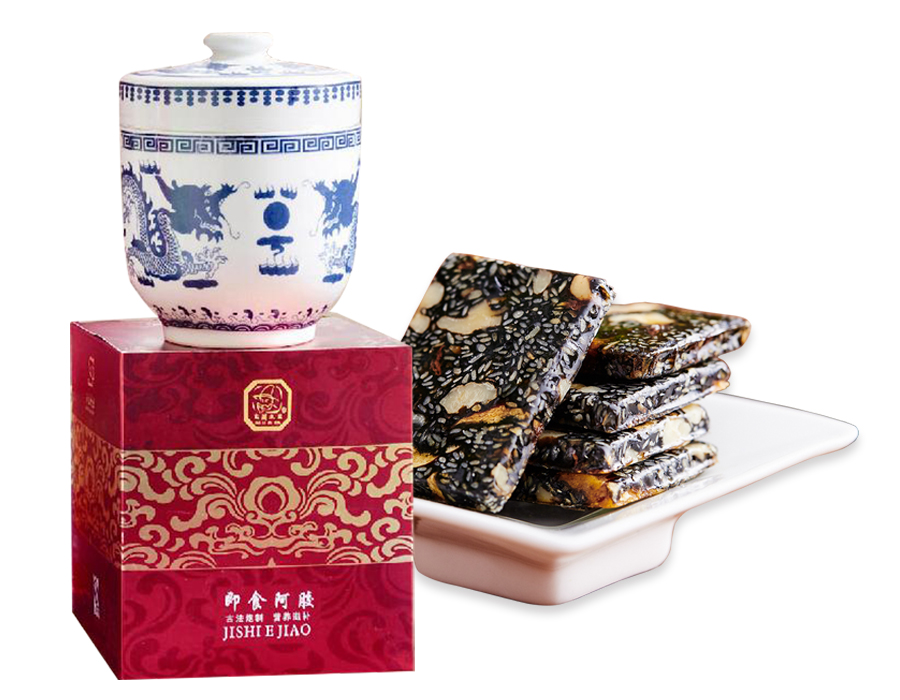 即食阿膠是根據(jù)唐代宮廷秘方“貴妃美容膏”組方所得,1920 年由東阿潤(rùn)惠堂第六代掌柜任國興研制發(fā)明,形成現(xiàn)代固體形態(tài)、 方便攜帶和食用的“即食阿膠”(阿膠糕)。任國興隨之首創(chuàng)凝膠 成糕法,將黑芝麻、核桃仁、桂圓肉、紹酒、冰糖等… …
